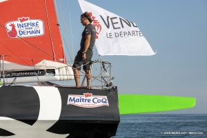 Passé quatrième au classement hier au soir, Yannick laissait éclater son contentement ce matin au téléphone auprès de son équipe, se remémorant qu’il y a peu l’étrave de Maître CoQ IV pointait en dixième position. « Très heureux d’être à cette position de 4ème . Même si je garde un œil sur Louis Burton ( Bureau […]