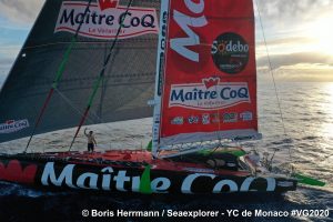 Ça bombarde autant que ça cogite à bord de Maître CoQ IV. «Je suis un peu sceptique quant à la route à emprunter. C’est bizarre entre les routages très sud et la route que l’on fait qui est plus au sud-est. Je ne sais pas trop quoi penser…. On va être bien bloqué dans la […]