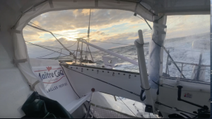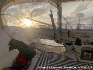 Alors que le skipper Maître COQ avance à bonne cadence dans une mer toujours assez dure, il a répondu à la vacation de l’organisation en visio et décrivait ses conditions de vie à bord de Maître CoQ ce matin : « Je ne sais pas si c’est ça le grand Sud, mais c’est invivable à bord […]