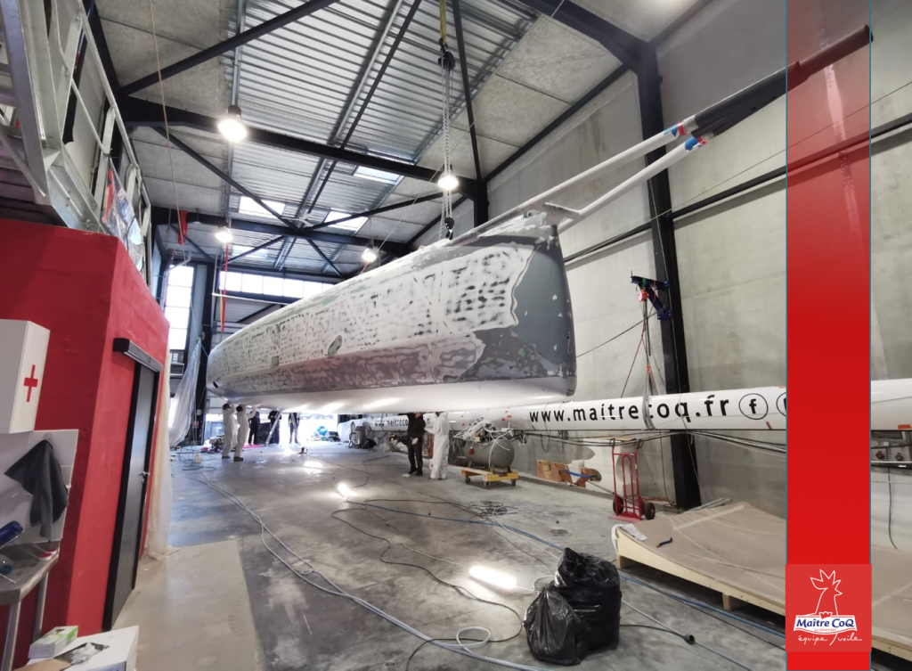 Deux mois intenses viennent de s’écouler et ce n’est pas fini. Reste encore un mois avant la mise à l’eau de Maître CoQ IV avec une équipe de pros, très engagés que je remercie. »