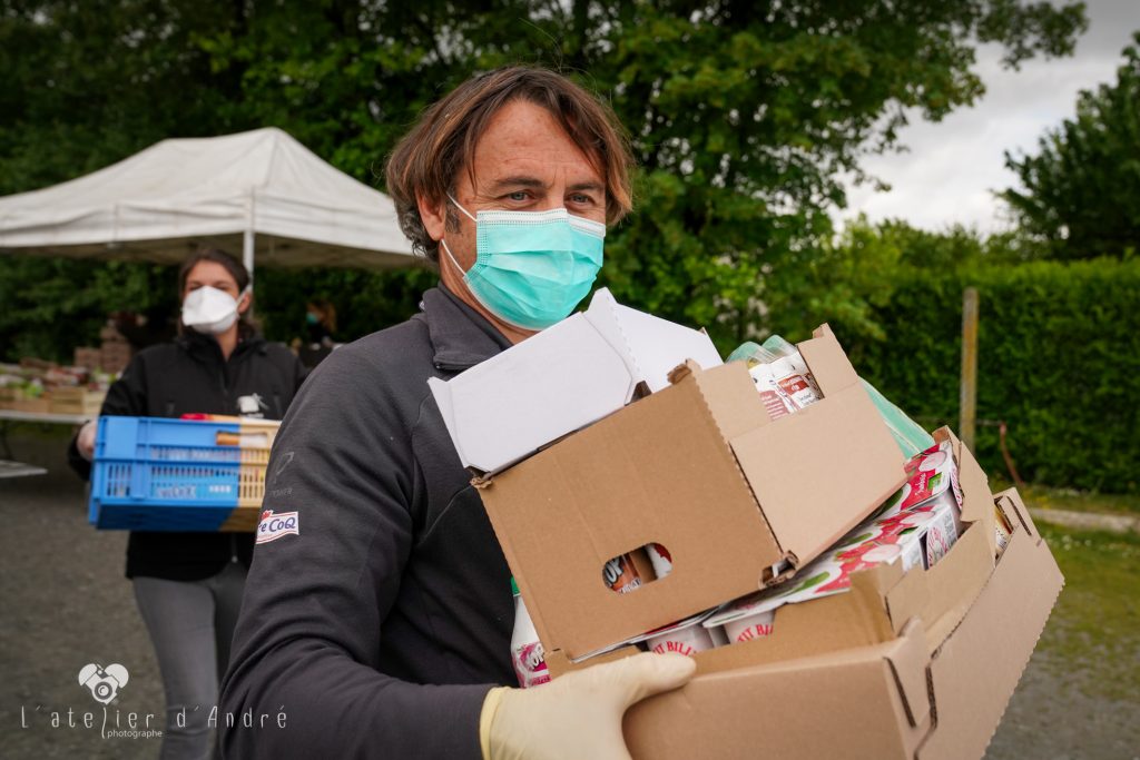 Yannick BESTAVEN : « Prendre un peu de recul et réfléchir à notre vie, ce qu’on en a fait et ce qu’on en fera demain… Pour moi, cette période de confinement est propice à l’ouverture vers les autres. J’ai voulu m’inscrire à la réserve civique, aller avec mon camion aider à la distribution de tout et n’importe quoi, peu importe, tant que c’était utile. Fort de cette envie, j’en ai discuté avec mon partenaire Maître CoQ qui m’a donné les coordonnées de la Halte du Cœur dont l’entreprise est mécène. Et franchement, quel beau cadeau ! En donnant de mon temps, je me suis beaucoup enrichi humainement. Avec ma compagne Claire, nous sommes arrivés au point de rendez-vous donné par l’association, sur un parking où était en place un camion réfrigéré et un chargé de distribution qui est en poste depuis 15 ans. Nous avons aidé l’équipe à monter une tente afin de mettre à l’abri les denrées périssables type fruits et légumes. Les autres colis étaient prêts. Ne restait qu’à distribuer le tout. Toute une chaine de bénévoles s’est mise en place. Mon poste était de faire la liaison entre le camion et les coffres des voitures des bénéficiaires. J’ai donc ainsi pu passer un peu de temps avec chacun. Tous ont des histoires singulières et viennent d’horizons très différents. Un moment précieux. La Halte du Coeur a besoin de bras toute l’année, et encore plus dans cette période particulière… j’y retournerai mercredi prochain et pourquoi pas à d’autres moments entre mes entrainements et les compétitions. »