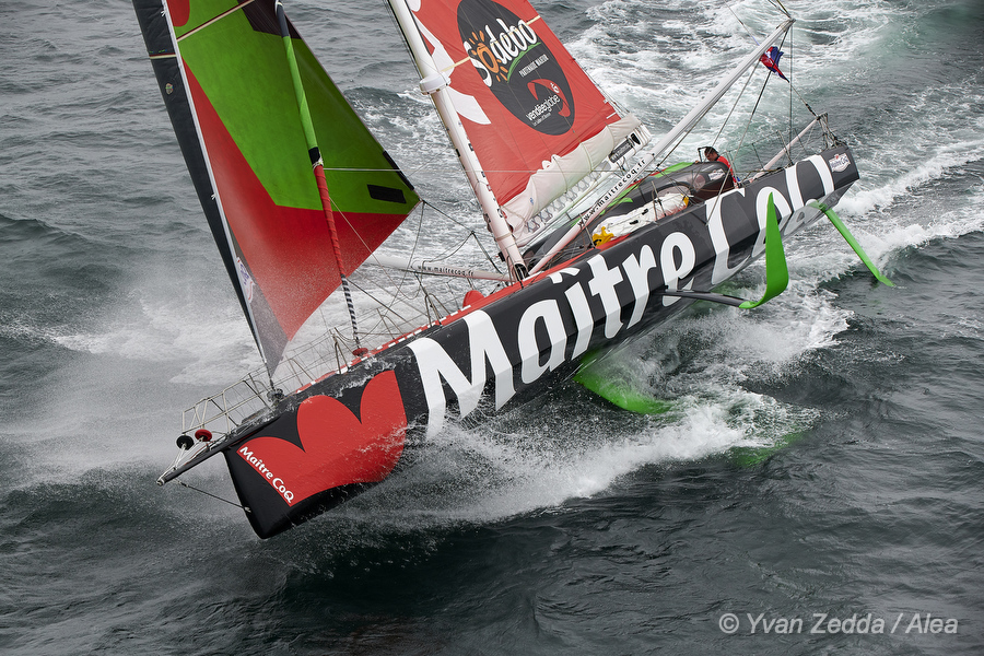 Sous grand spi rouge aux couleurs de Maître CoQ et porté par un vent de travers, belle glisse en perspective pour notre super duo qui, après 2281 milles déjà parcourus, vise la ligne libératrice devant les Sables d’Olonne, distante de 525 milles…