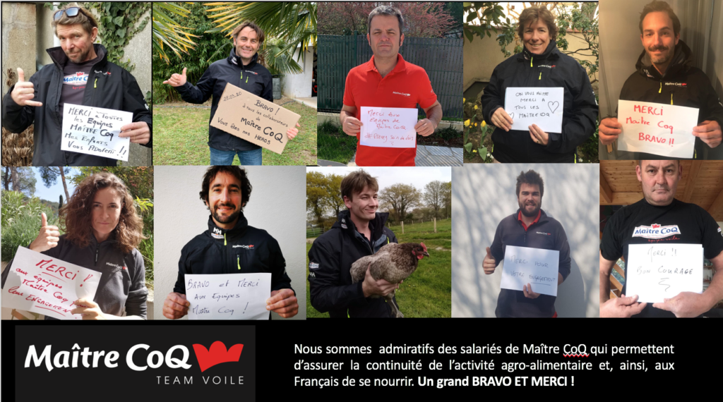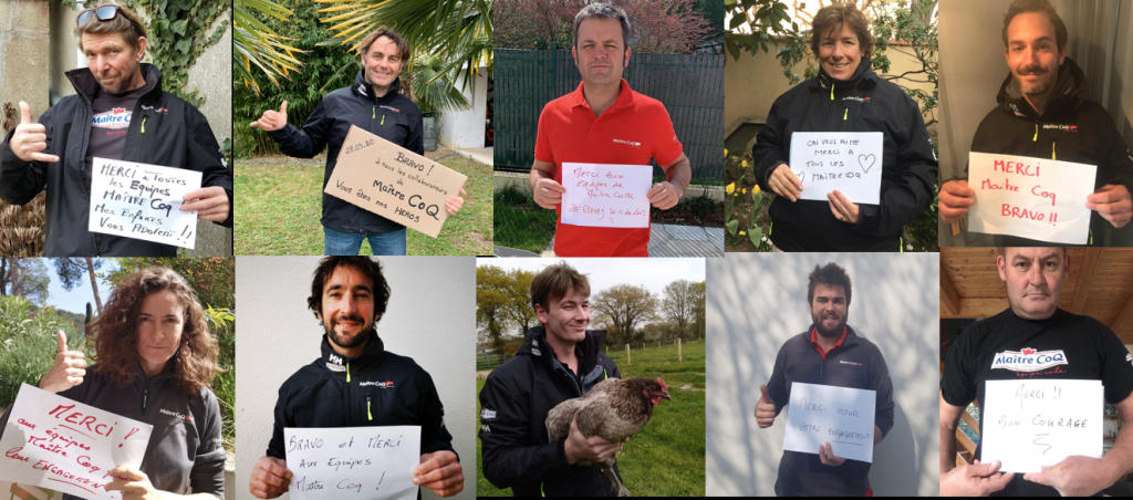 En cette période singulière, nous ne pouvons être qu’admiratifs et reconnaissants envers les personnes qui s’engagent pour le bien collectif : personnels de santé, forces de l’ordre, scientifiques mais aussi toutes les personnes – comme les salariés de notre partenaire Maître CoQ dans le secteur agro-alimentaire – qui rendent possible la poursuite de l’activité. Et ce malgré les craintes et les peurs liés à la menace invisible qui rode.