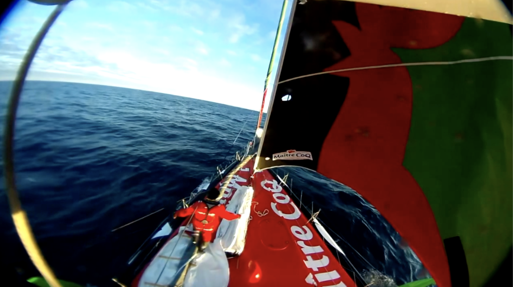 Joint par l’organisation lors de la vacation du jour, Yannick était « au taquet », à la découverte des mers du Sud dans des conditions très favorables. Le skipper Maître CoQ maintient une cadence relevée tant qu’il peut, afin de ne pas se faire cueillir trop tôt par la dépression qui arrive par l’Ouest et qui va balayer toute le groupe leader.