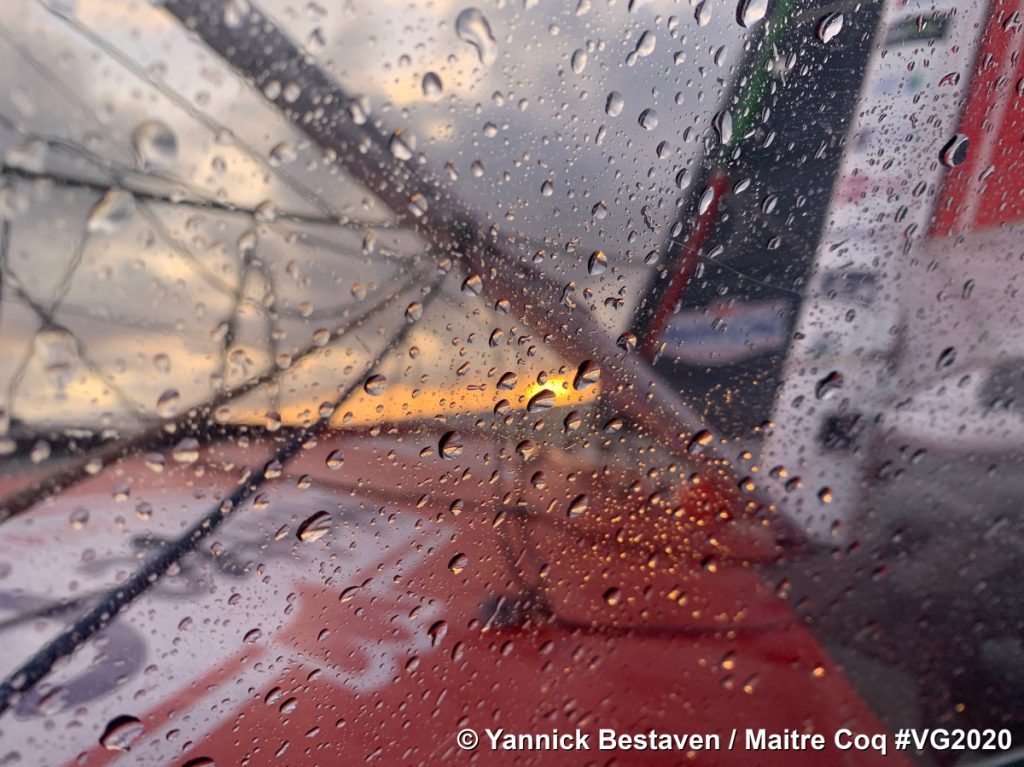 Le skipper maître CoQ compose avec les conditions irrégulières rencontrées sur l’eau. Il tâtonne, se questionne toujours autant à la vue des modèles européens et américains qui ne sont pas toujours raccord, et s’adapte : pas le choix étant donné les incertitudes ! Objectif :  se maintenir à l’Est de l’anticyclone et de partir vers le cap Horn en mettant un peu de distance entre lui et la meute de chasseurs.